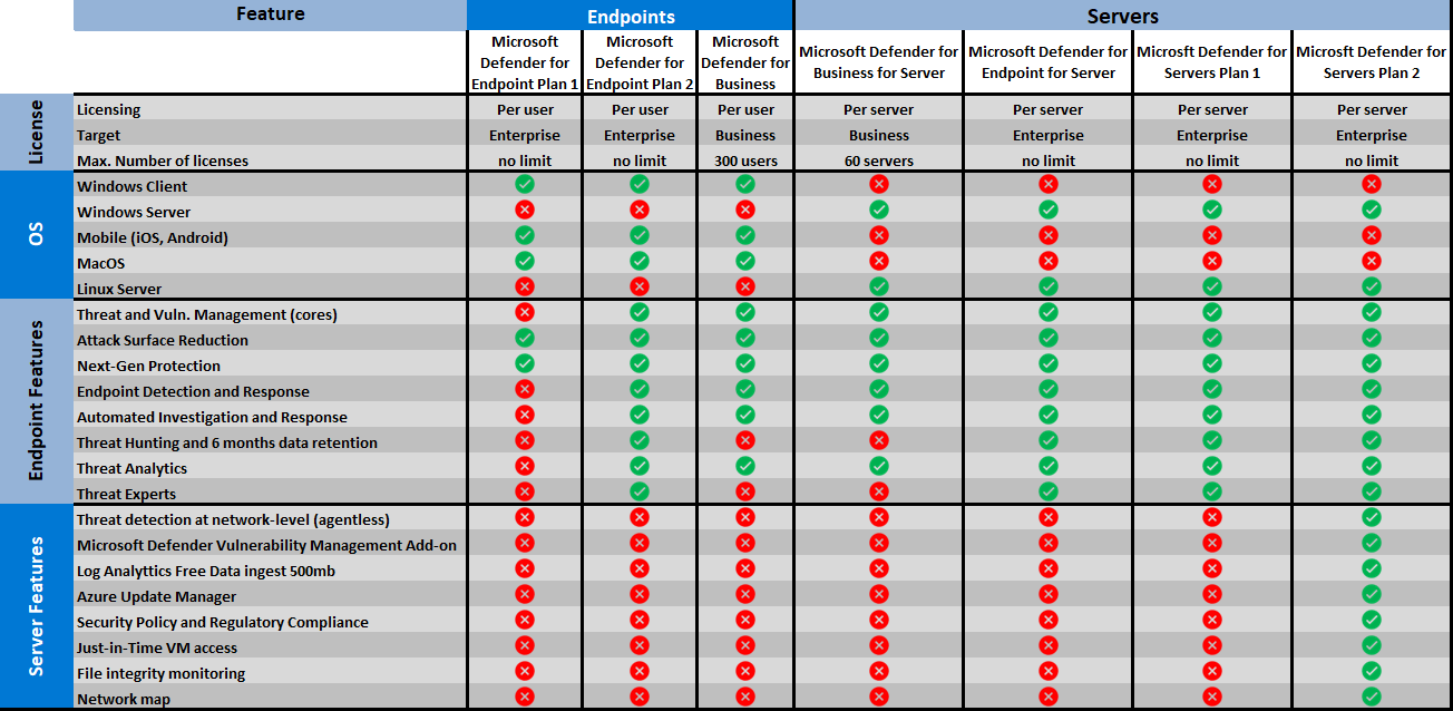 Licensing for MDE can be confusing at first glance, so let’s break it down. There are three main plans for endpoints and additional options for servers operating systems: